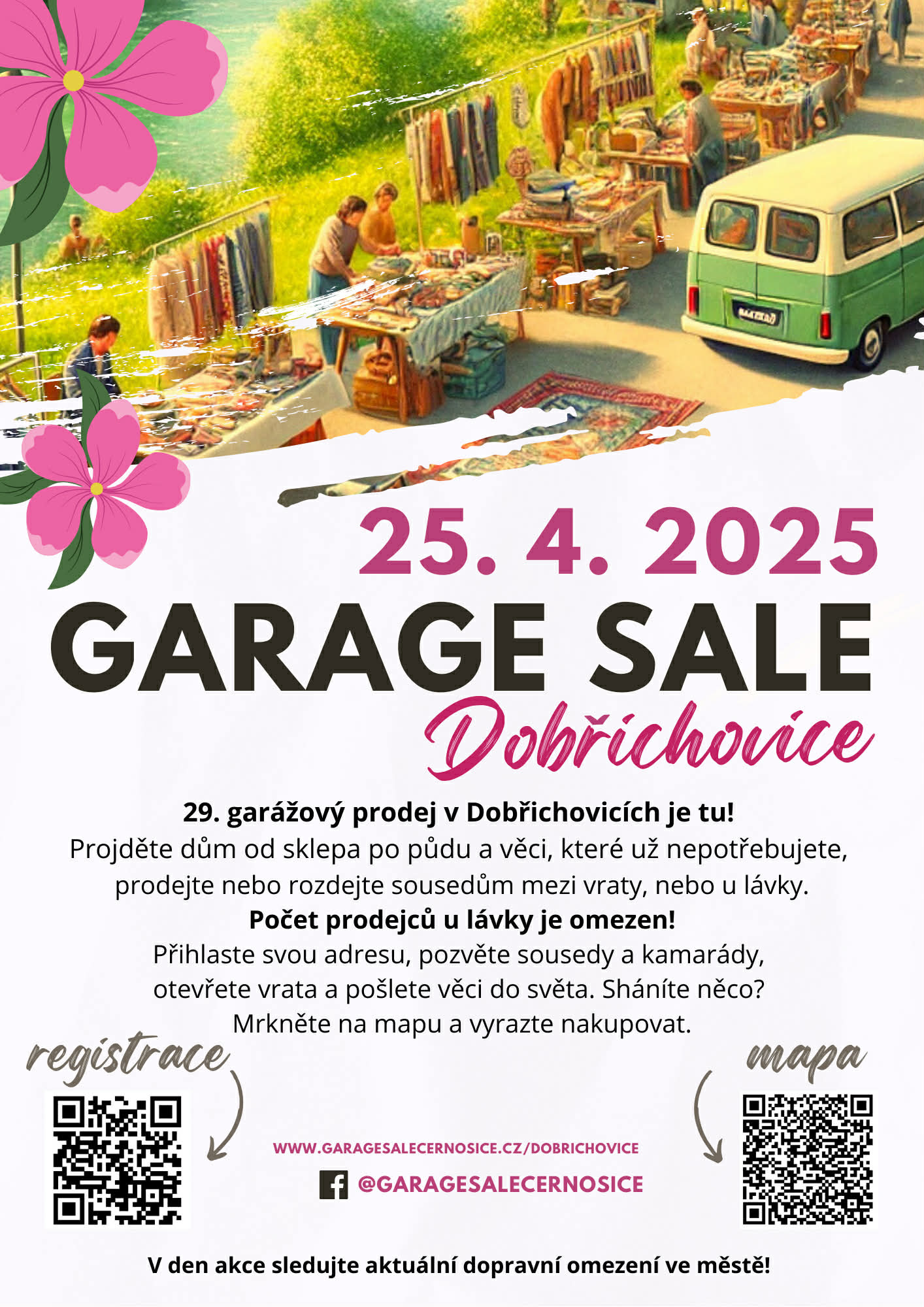 Už po jednatřicáté se v Černošicích otevřou dvorky, garáže a zahrady v rámci tradičního Garage Sale Černošice. Máte doma věci, které chcete poslat dál? Přidejte se i vy a dejte věcem, které už doma nepotřebujete, druhou šanci.